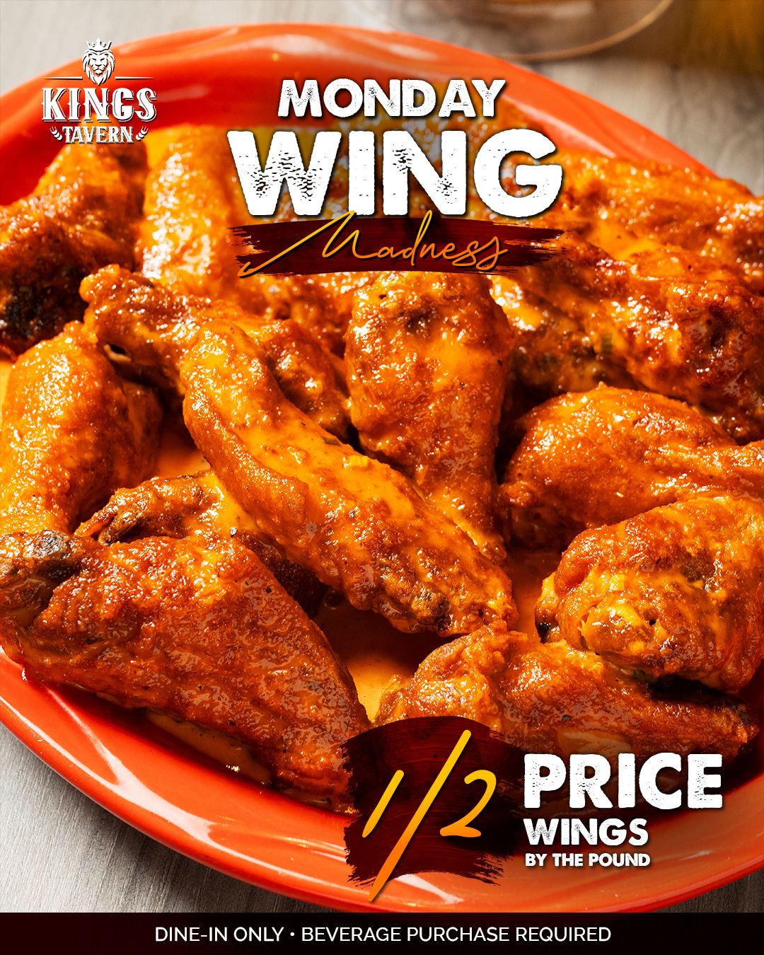 Must purchase a beverage to order our wing and appetizer specials. No free pop re-fills, no doggy bags, no takeout, no coupons.